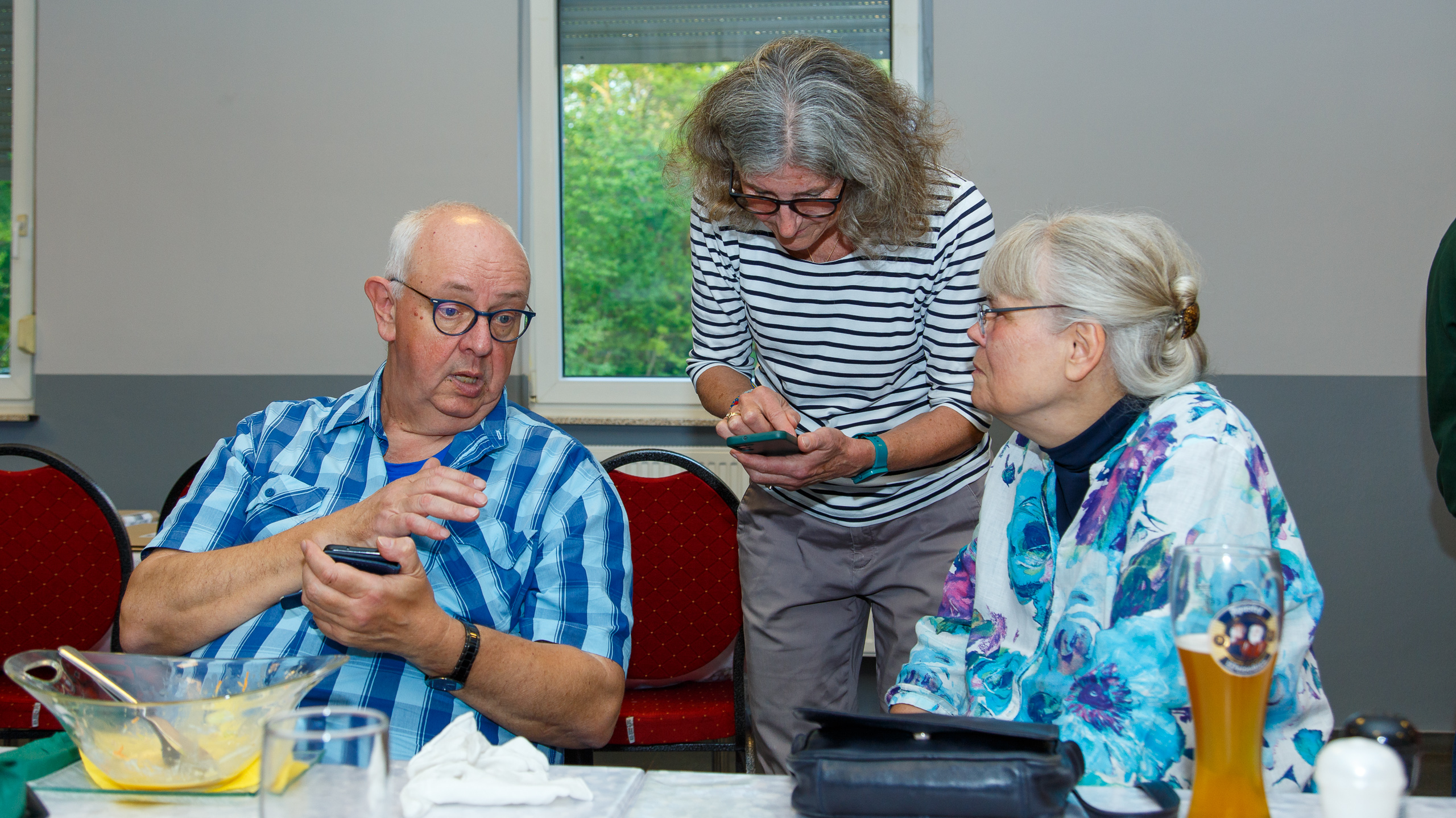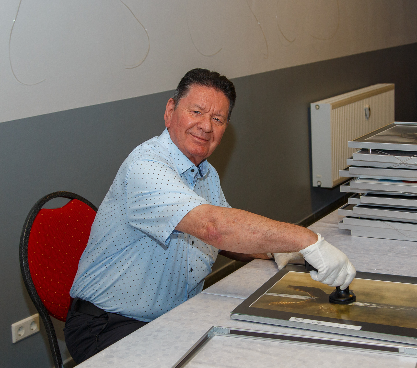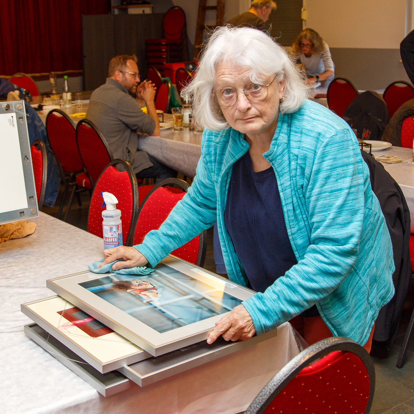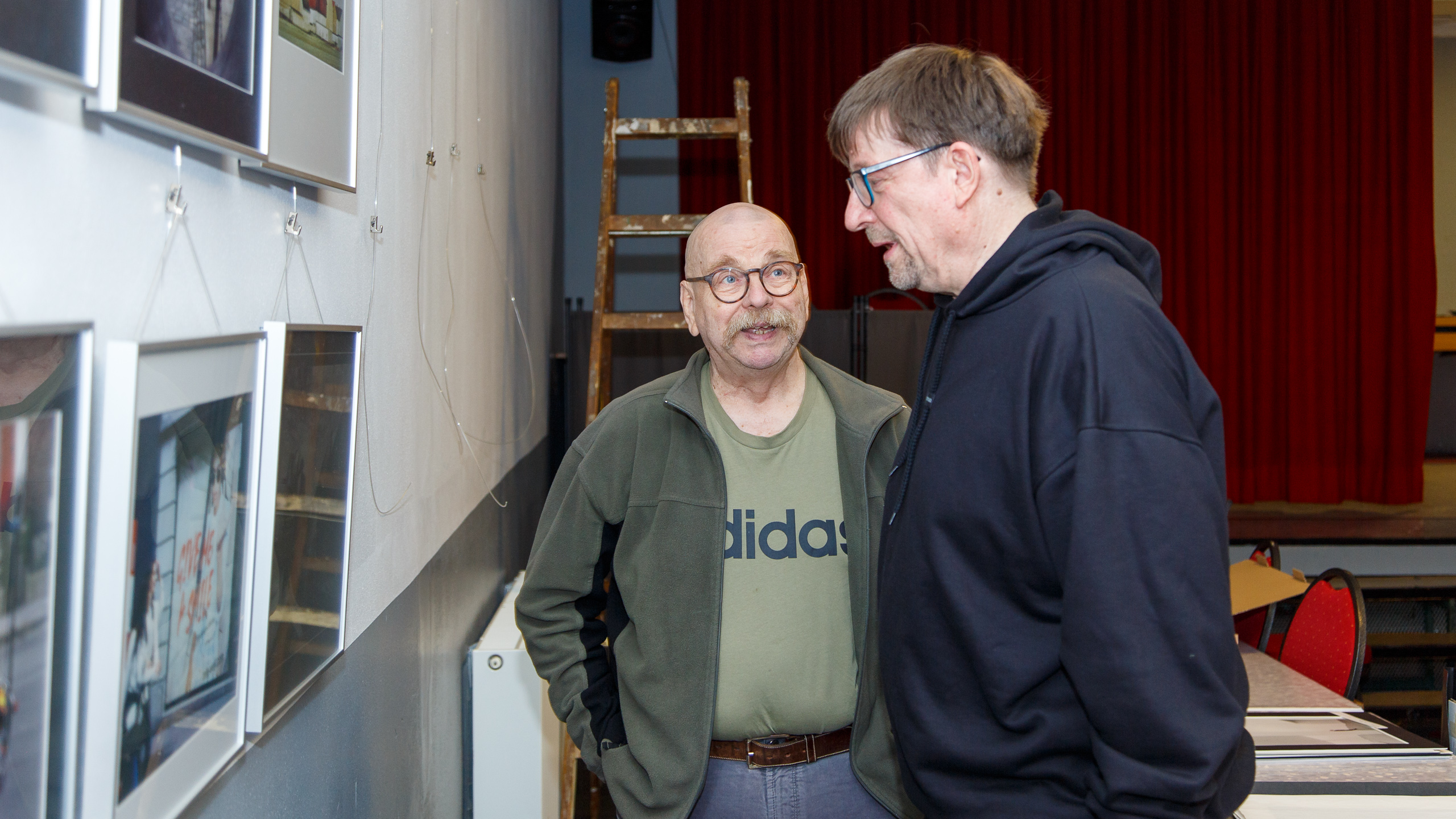 Bei der diesjährigen Portfolio-Ausstellung kann jedes interessierte Mitglied zwei Bilder präsentieren. Am letzten Donnerstag wurde beim Aufbau derselben im Saal der KSK heftig gearbeitet. Putzen, Rahmen öffnen, Bild tauschen, Rahmen wieder schließen und Aufhängen. Eine ganze Menge Arbeit bei der Anzahl der eingereichten Bilder. Aber auch intensive Diskussionen kamen – wie immer – nicht zu kurz.